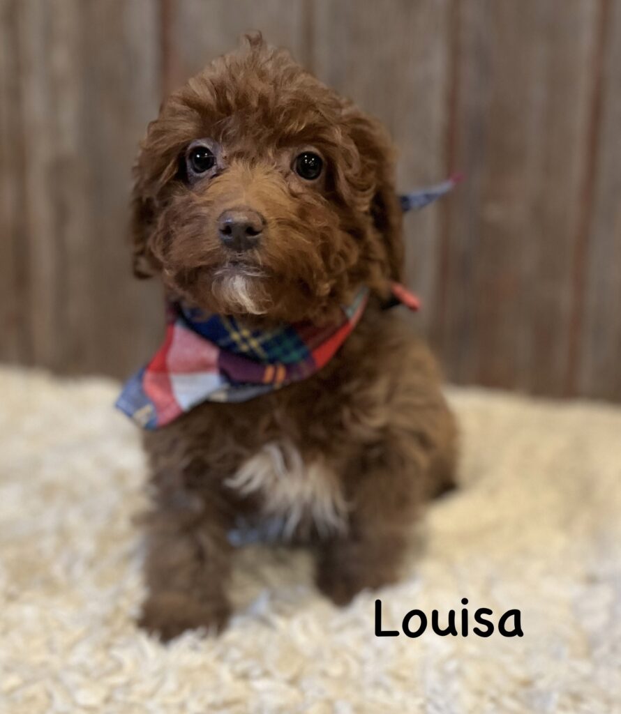 Our puppies are raised in our house and my kids help take care of them and play with them daily. The puppies are ready to go home at 8 weeks old. They come up to date on vaccinations and deworming, have a vet visit with our vet at 6-7 weeks old, and come with a microchip and a 1 year health guarantee.
